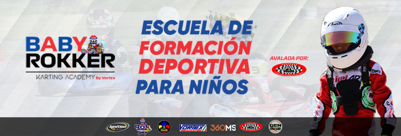 El programa BABY ROKKER KARTING ACADEMY diseñado para pilotos de 4 a 7 años de edad que quieran vincularse con el mundo del kartismo profesional. Dirigido por personal idóneo con más de 15 años de experiencia a nivel nacional e internacional.